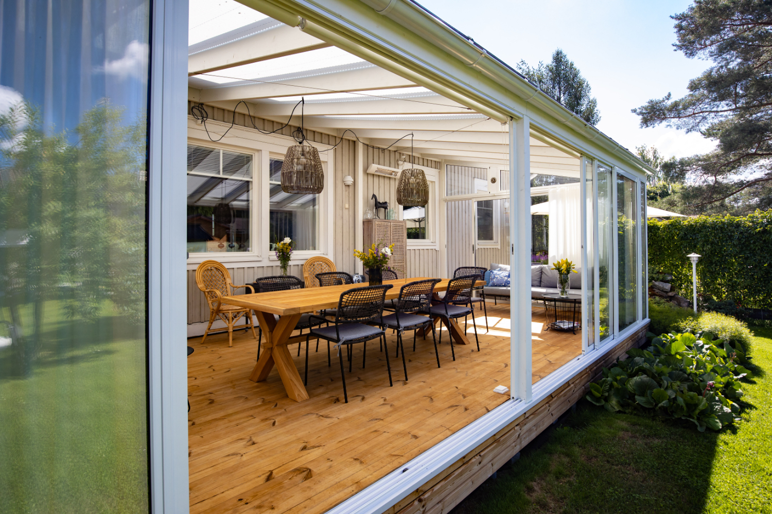 Yksilölliset lasiterassit ovat suosituimpia tuotteitamme. Lasituksen ansiosta nautit terassista ympäri vuoden. Näin saat toiveittesi ja käyttötarkoituksen mukaisen lisähuoneen vaivattomasti. Monikäyttöisessä tilassa vietetään kevään ja kesän juhlia, rentouttavia lepohetkiä, nautitaan sateella ja paisteella arjen tähtihetkistä.